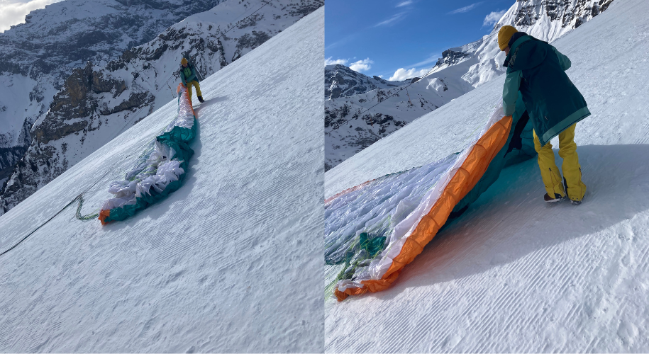 Med erfaring med paragliding i Syd Amerika, flere steder i Europa, og senest Marocco, som er hendes foretrukne, er jeg i de tryggeste hænder. Det føles som om at Ellen kender hvert bjergs stemning, hver eneste termiske hemmelighed. Hun bevæger sig hjemmevant i sneen, tjekker vinden med et rutineret blik og fortæller små historier, mens paraglideren folder sig ud bag os som et farverigt løfte.